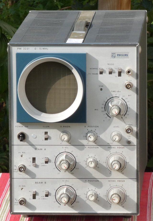 Philips PM 3231 2 Strahl - Oszilloskop Der Oszi wurde liebevoll restauriert und abgeglichen. Die Strahlen sind sehr hell und scharf. Intern wurden die Hochspannungen und sonstigen Betriebsspannungen über Telefonbuchsen abgreifbar gemacht. Sie können als Kalibrierquelle für Multimeter genutzt werden, wenn ein Vergleichsmessgerät genutzt wird. Derartige Messgeräte sind nicht mehr funktionsfähig zu bekommen. Obwohl digitale Oszis sehr preiswert geworden sind, stellen sie kein vergleichbares Equipment zu analoger Messtechnik dar. Abholpreis 180 Euro |