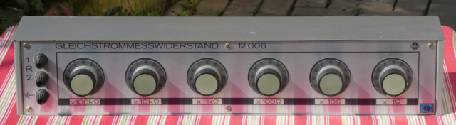 Ein RFT Gleichstrommesswiderstand, der sehr gut für den Abgleich von Multimetern oder für Lehrzwecke verwendet werden kann. Preis 80 Euro |