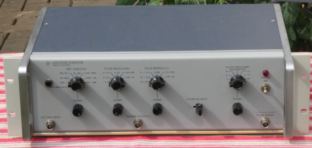 Ich habe mir erlaubt ,diesen historischen Pulsgenerator komplett zu reinigen und zu restaurieren. Er erzeugt steile Rechteckimpulse auf analoger Basis mit frei einstellbarer Impulsverzögerung und Amplitude auch für höhere Impulsspannungen.
