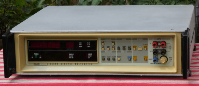 Eines der besten Digitalen Voltmeter mit Vakuumröhrenanzeigen aus dem Jahr 1977. Das Gerät ist extrem zuverlässig und hochgenau. Die Verarbeitung ist umwerfend und an vergoldeten Bauteilen wurde nicht gespart. 7 1/2 Digits werden tatsächlich gemessen und die letzte Stelle zappelt nicht so herum, wie bei diversen anderen späteren Multimetern. Die Samplingrate ist umschaltbar. Die Kelvin Messleitung ist mit dabei. Derartige Gerät werden verwendet um die Stimmstabilität analoger Synthesizer und um andere Messgeräte abgleichen zu können, sowie kleinste Spannungen auf Leiterzügen bei der Fehlersuche messen zu können.