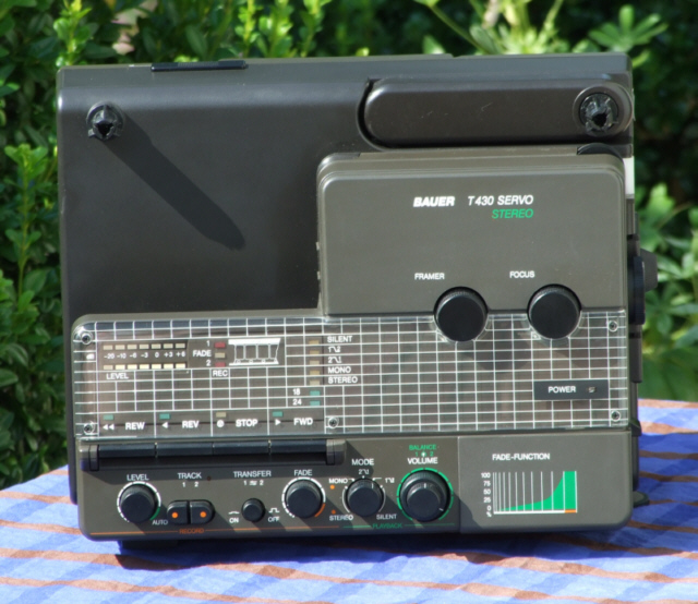"BAUER T430 SERVO" 180 Meter, Super 8. 18 und 24 Bilder je Sekunde mit Ton.