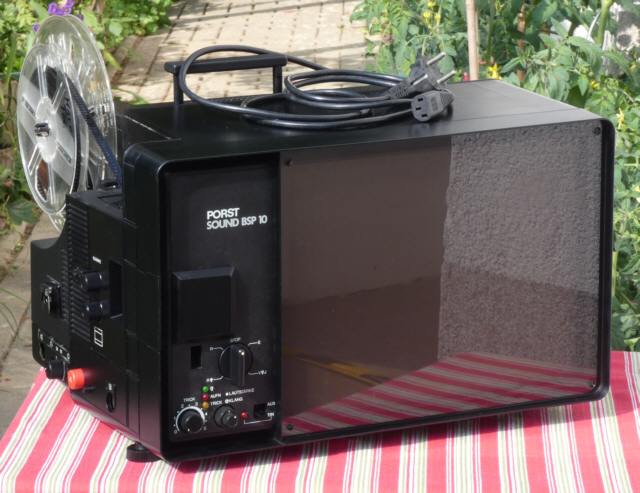PORST SOUND BSP 10 Super 8 Filmprojektor für Stummfilme und Tonfilme (Umschaltbar) mit eingebautem Bildschirm (Tageslichtprojektor) oder durch Umschaltung auch als Leinwand- Projektor nutzbar. Spulengrößen bis 240 Meter Film. 1 Leerspule dabei. Komplett restauriert und funktionsfähig.
