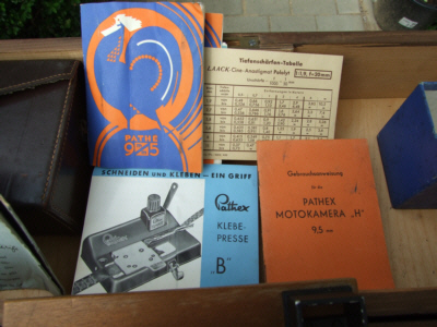 Die Ausrüstung beinhaltet eine handliche Filmkamera mit Handaufzug, die auch über Einzelbildmodus verfügt, Belichtungsmesser, Selbstauslöser, 2 Lederetuis, Filmklebepresse, Leerkassetten, Leerspulen, originaler Beschreibungen, perfektem Filmprojektor mit voller Funktion, 2 Stummfilme aus den 30er Jahren mit Zwischentiteln in deutsch und einem stabilen abschließbaren Holzkoffer.