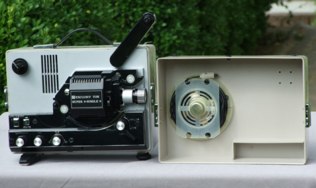 "exclusiv 2000 Ton" Originalgerät in repariertem Zustand Der Lautsprecher wurde erneuert. Es handelt sich um einen einfach zu bedienenden Super 8 Projektor für Spulengrößen von bis zu 180 Metern.